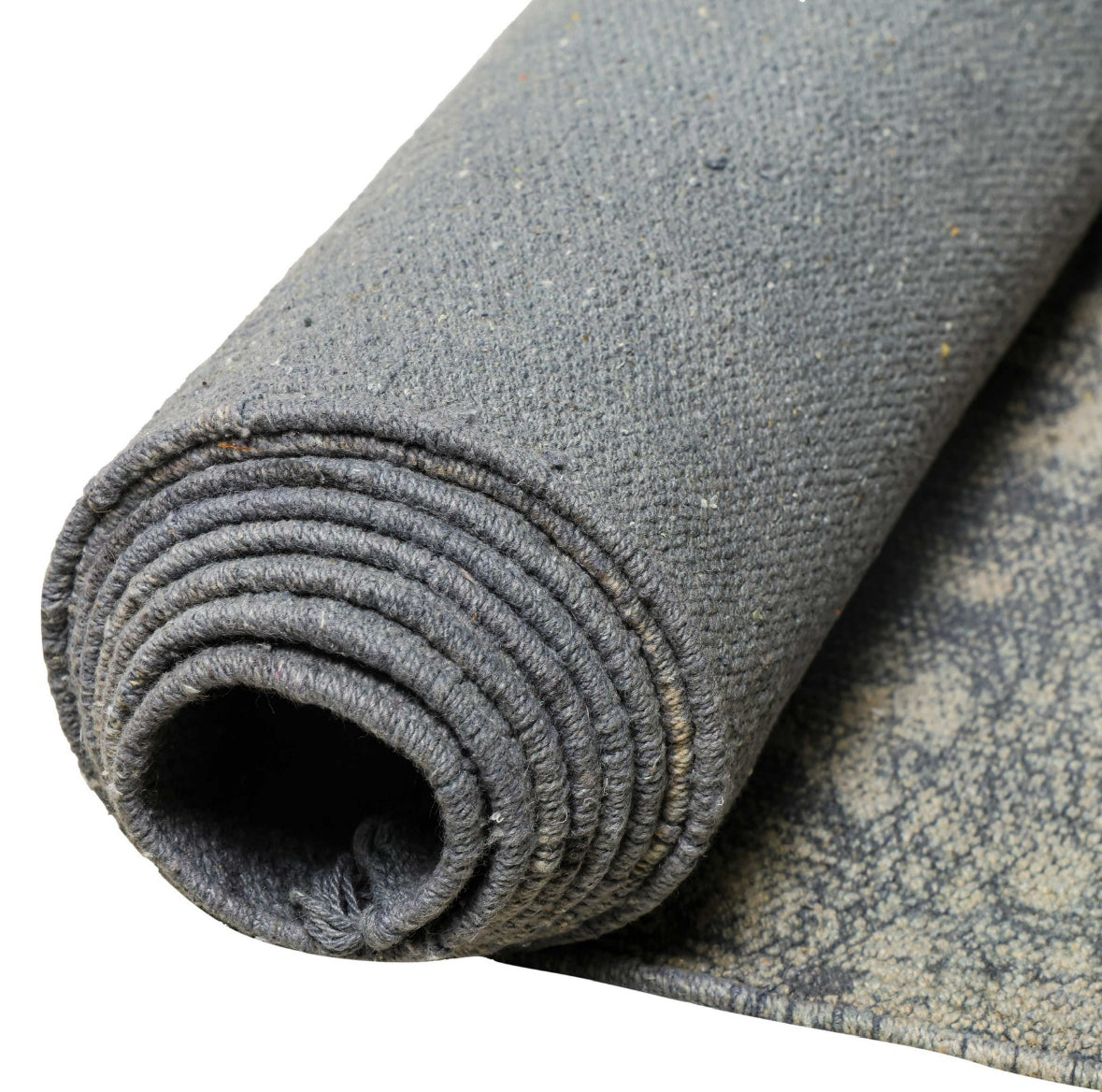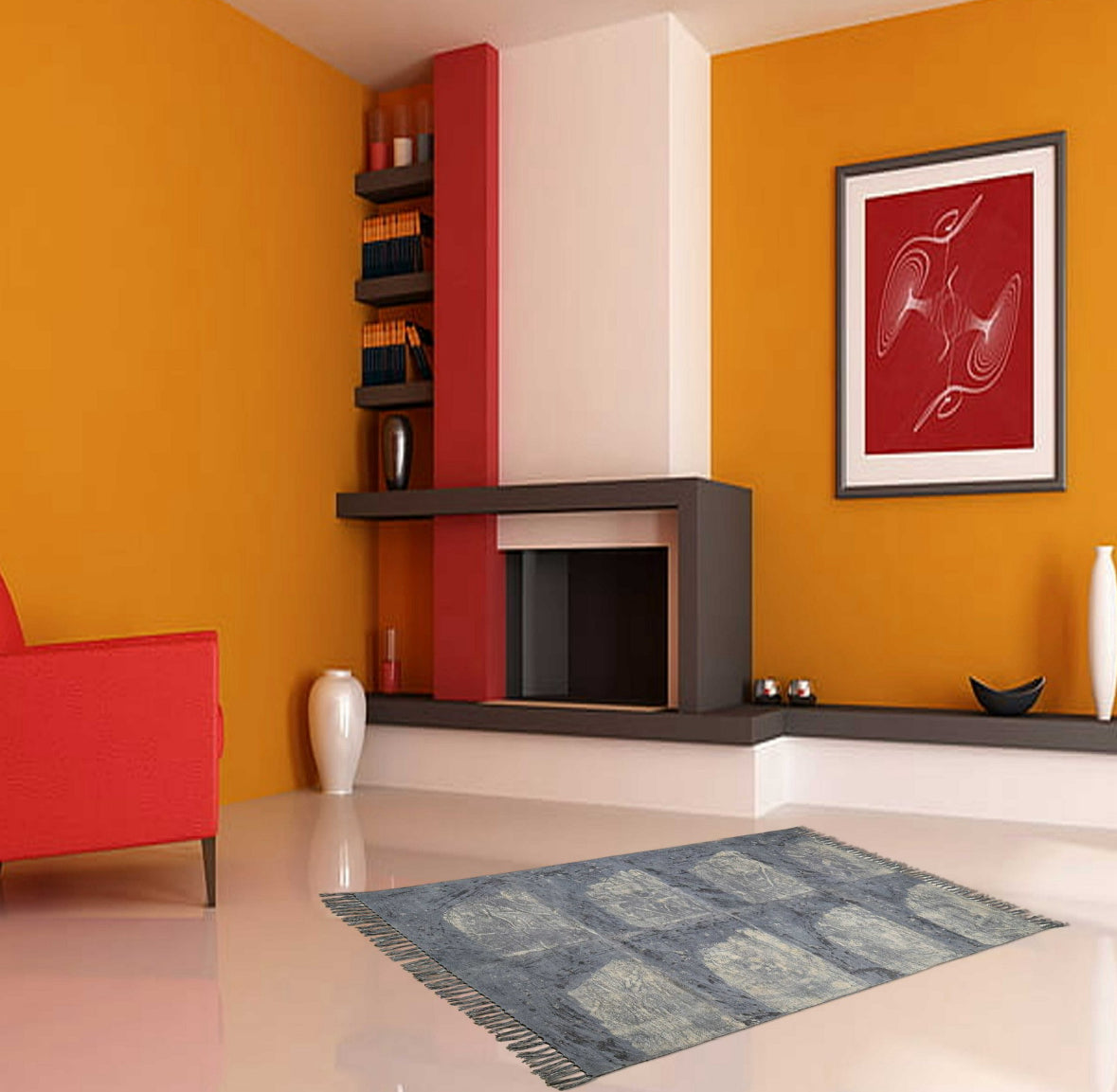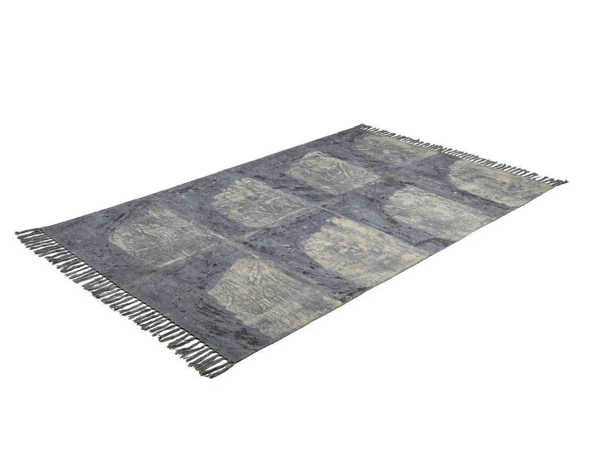 Add a touch of artistic charm to your space with this handwoven rug, featuring a unique abstract pattern in muted shades of blue and beige. The intricate design mimics a tie-dye or batik effect, framed with delicate fringes on both ends for a rustic yet refined finish. Ideal for contemporary or bohemian interiors.