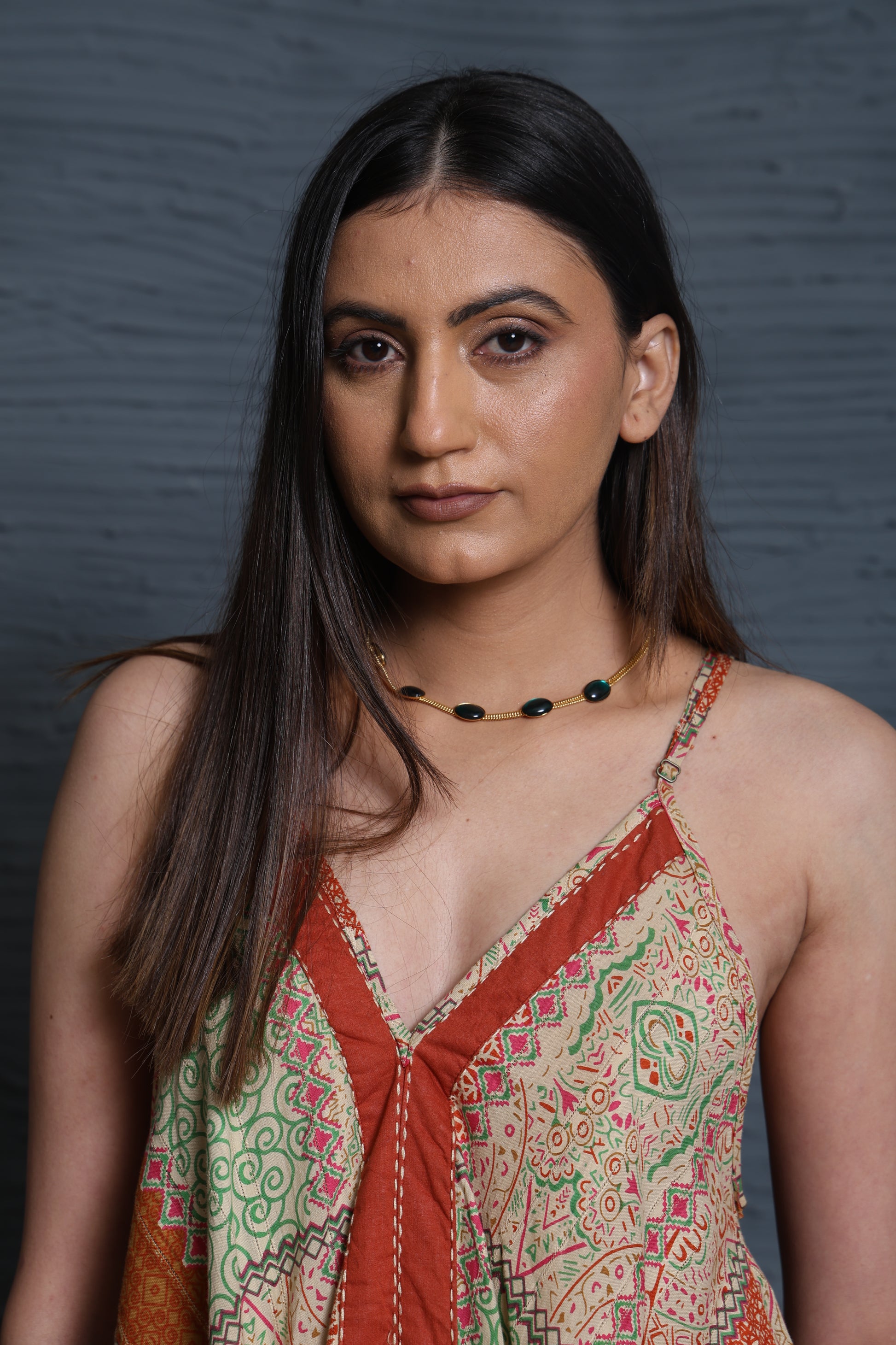 Luxe Sleeve Less Beige Printed Kantha Stitch Dress