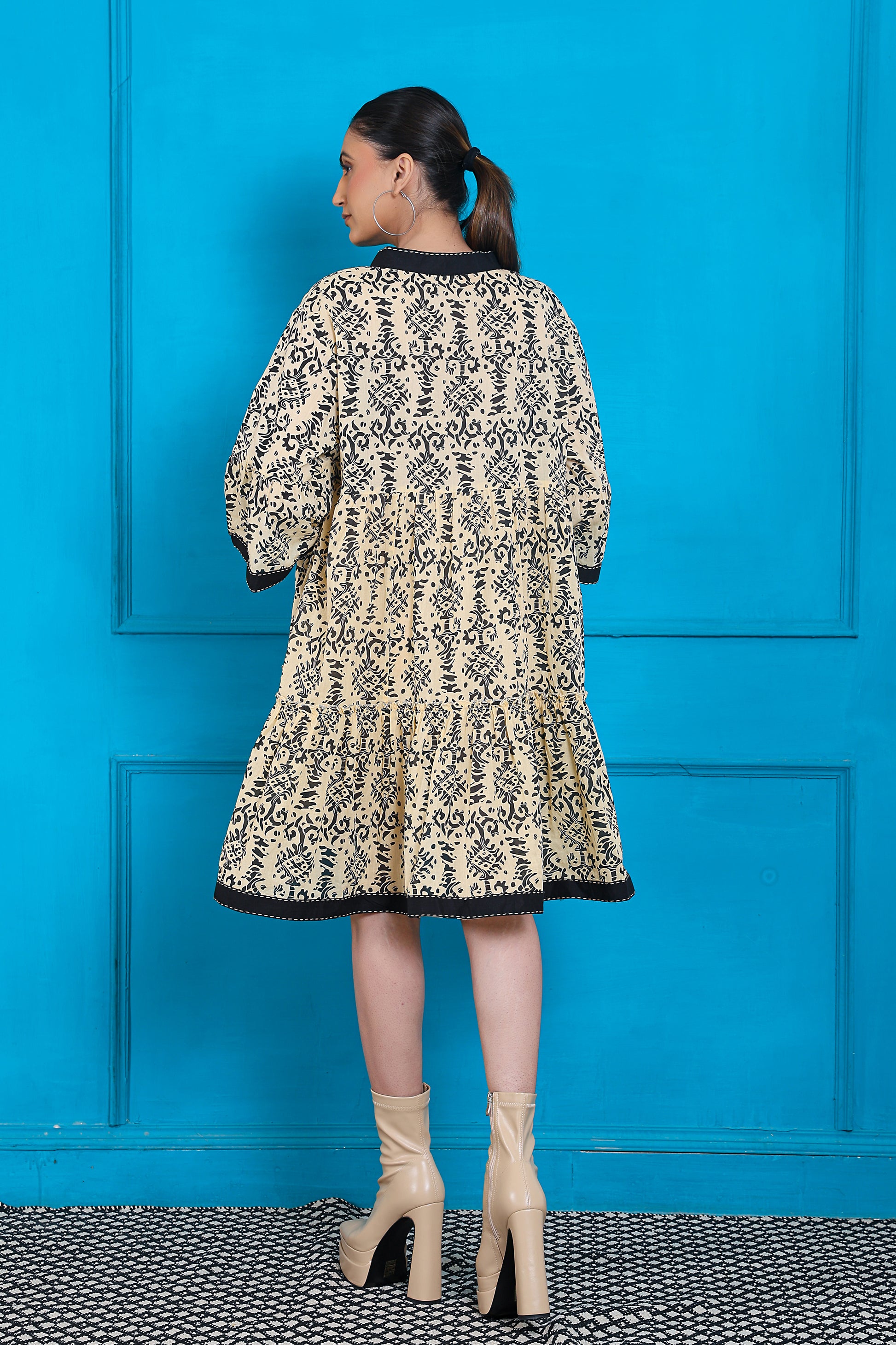 Luxe Three Fourth Sleeve Beige Printed Short Dress